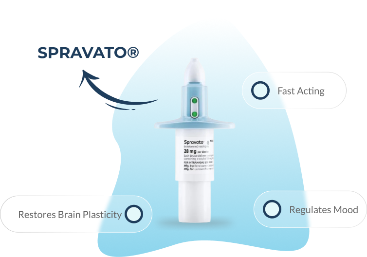 Spravato® is the first FDA approved prescription nasal spray for treatment-resistant depression, providing relief in as little as 24 hours.